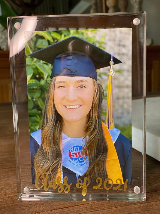 Acrylic Frame Magnetic 5x7 Clear Graduation School 1” Thick Stand Class 2023 Personalize