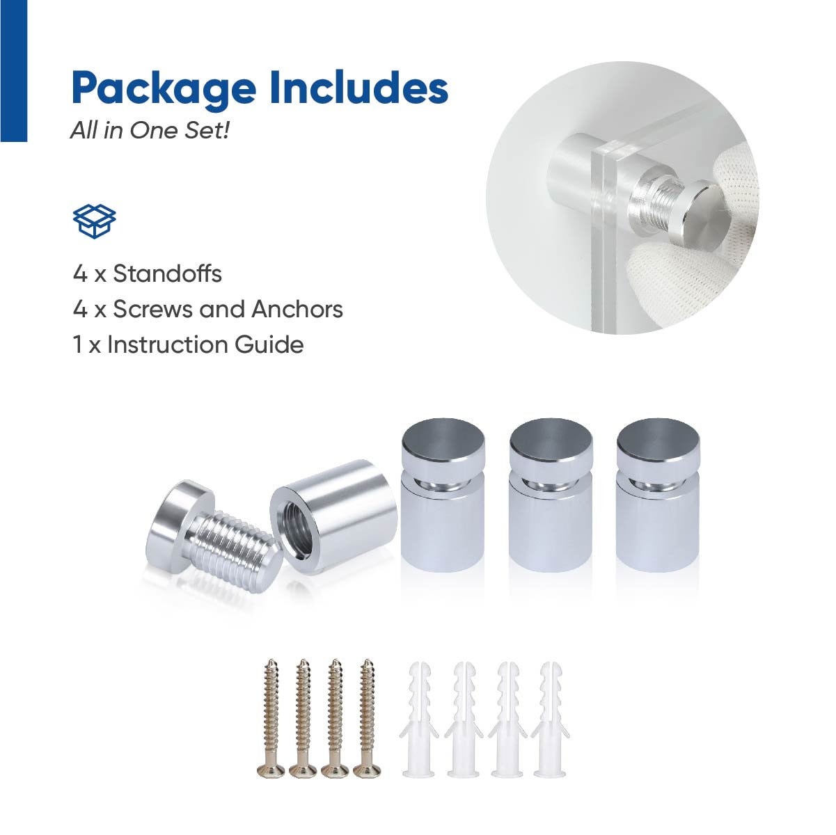 4 Standoff Bolts of your color choice (see photos)
