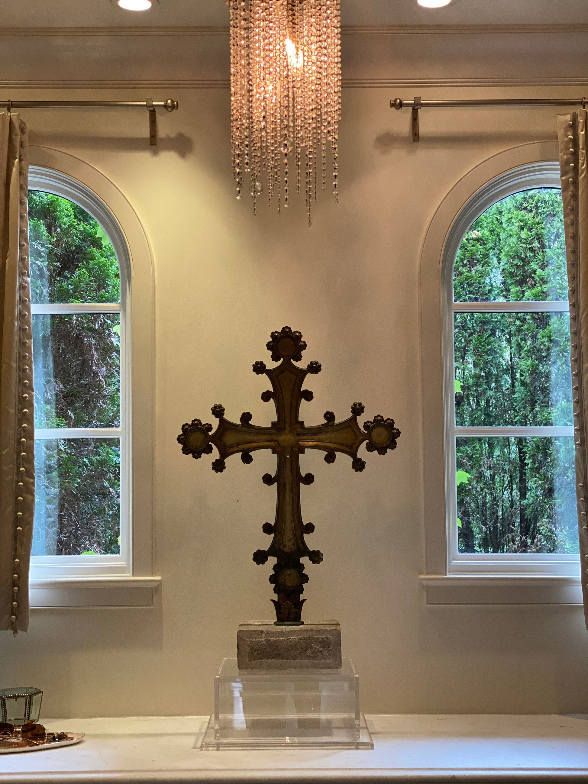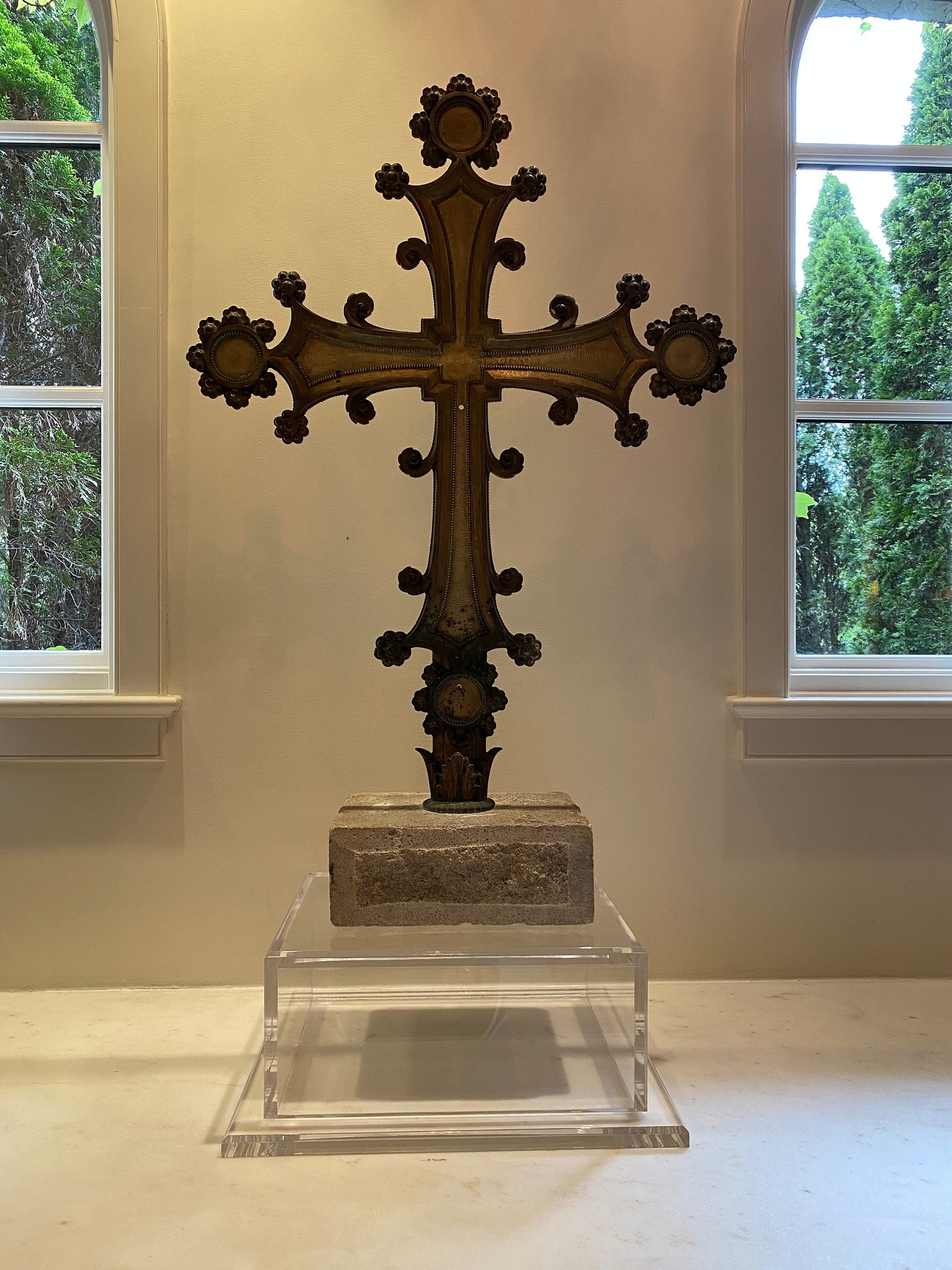 This piece was built for this cross, but we can build a pedestal for your piece of art.