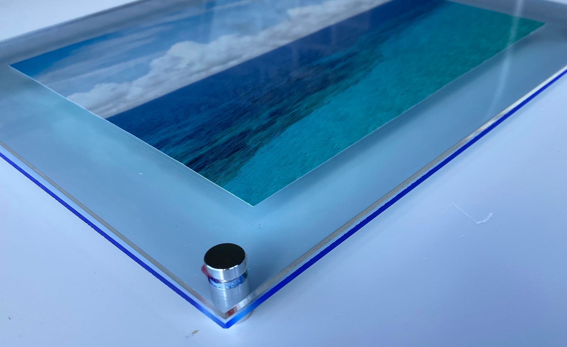 Once the frame is greater than 20” then the acrylic thickness increases to 1/4” to help alleviate from bowing.